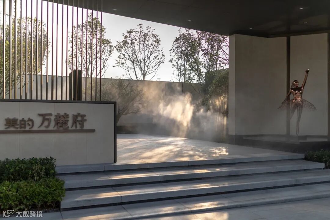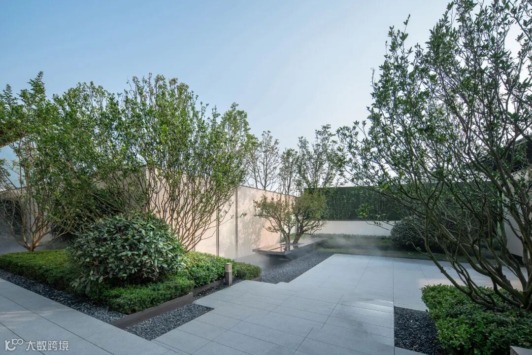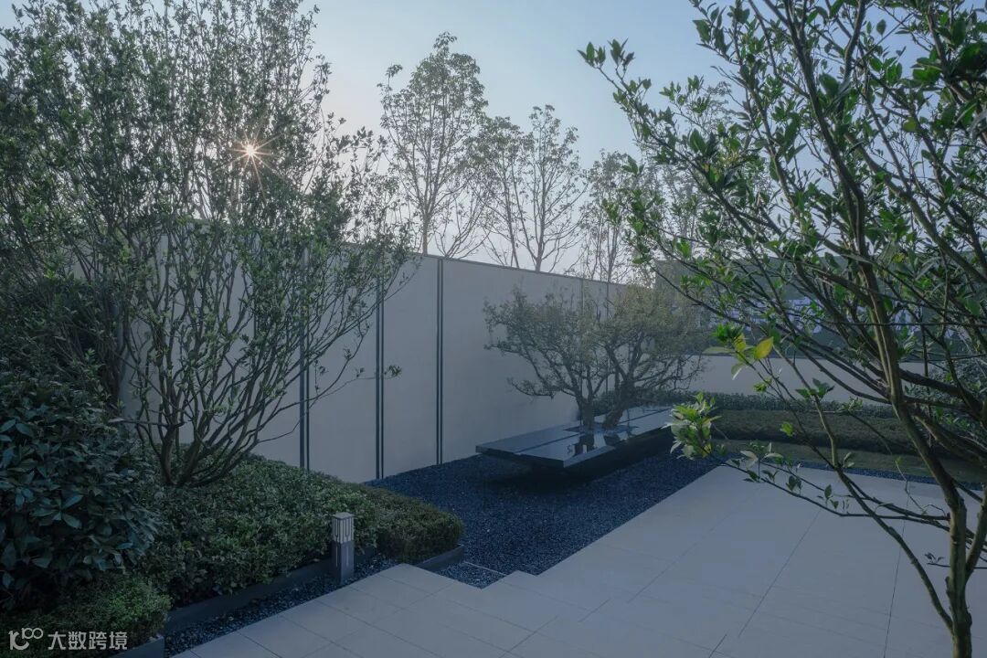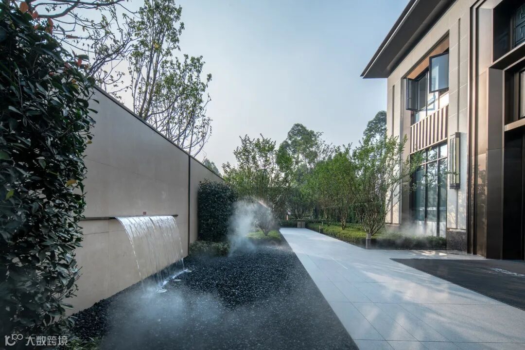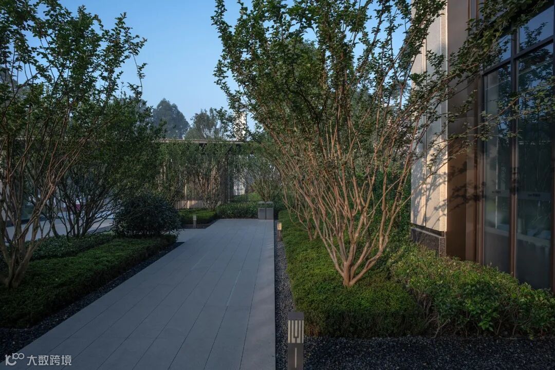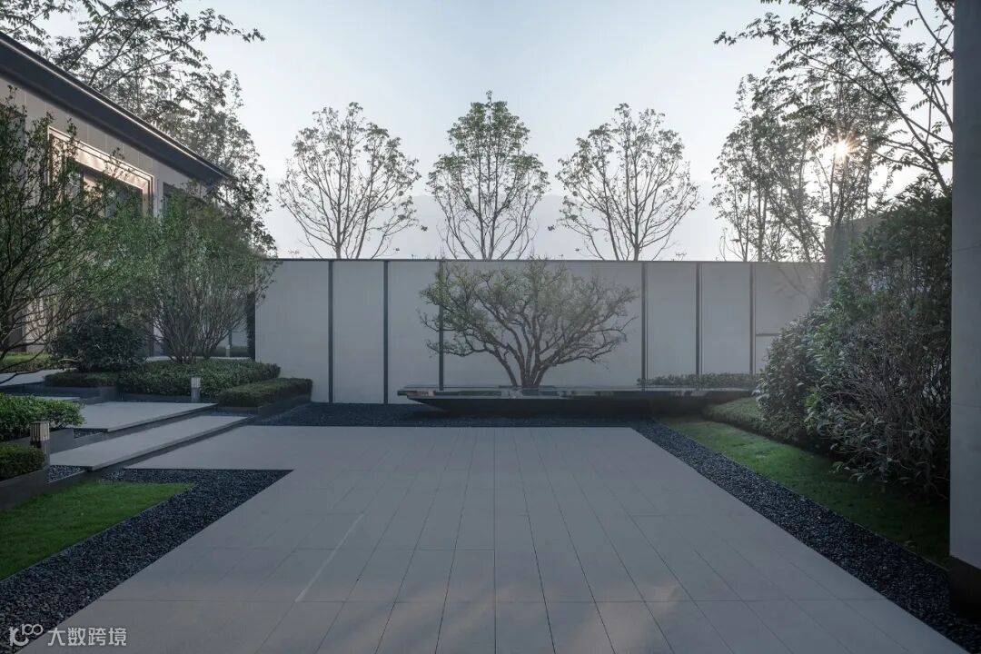 仪式感门楼结合延伸而出的景墙与栅格,
