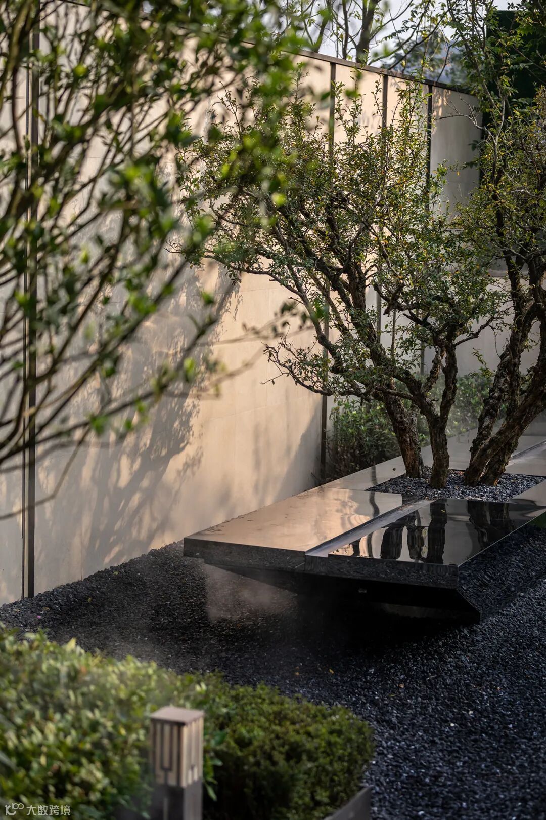 黑色的砾石与灰色的墙不言语,