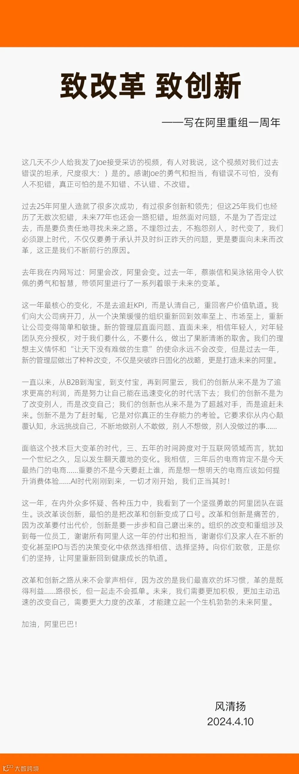 以下为内部信原文: