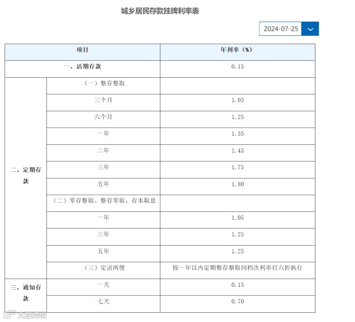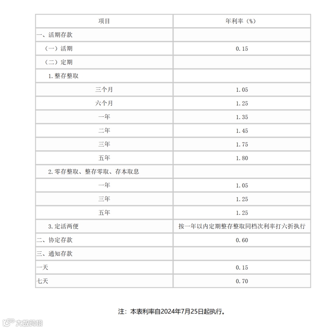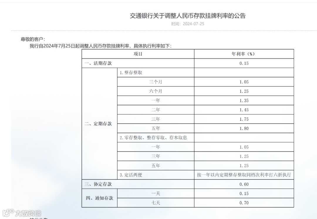 7月25日,工商银行、农业银行、中国银行、建设银行、交通银行、邮储银行六大行集体“官宣”全面下调存款利率。
