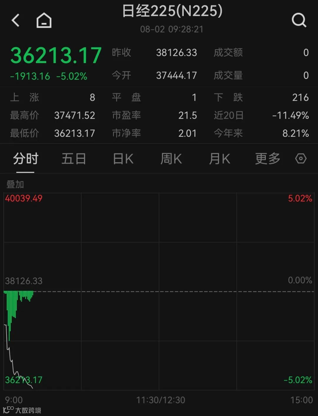 个股方面,大和证券股价盘中一度大跌21%,创历史最大盘中跌幅。