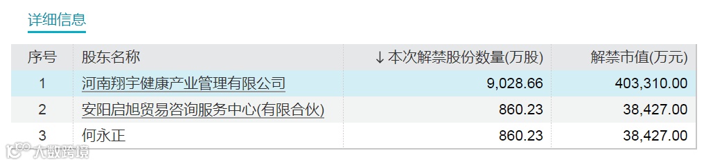 翔宇医疗解禁详细信息