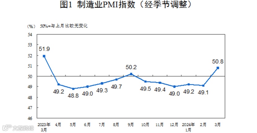 数据显示,3月,大、中、小型企业PMI分别为51.1%、50.6%和50.3%,分别比上月上升0.7、1.5和3.9个百分点。
