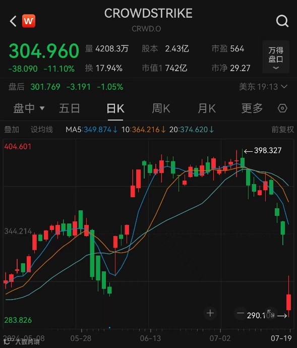 “微软蓝屏”上热搜!这家“肇事”公司股价大跌