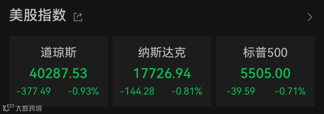 仪器、阿斯麦跌超3%,英伟达、AMD跌逾2%,奈飞跌超1%,谷歌、
