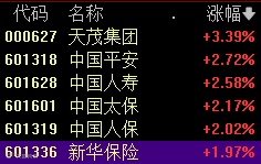 具体看,保险板块中,天茂集团、中国平安、中国太保等个股上涨。