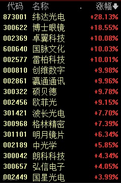长了,需要滴眼药。”龙头股博士眼镜上涨18.55%,近4个交易日累计涨超104%。此外,纬达光电、卓翼科技等个股也大涨。