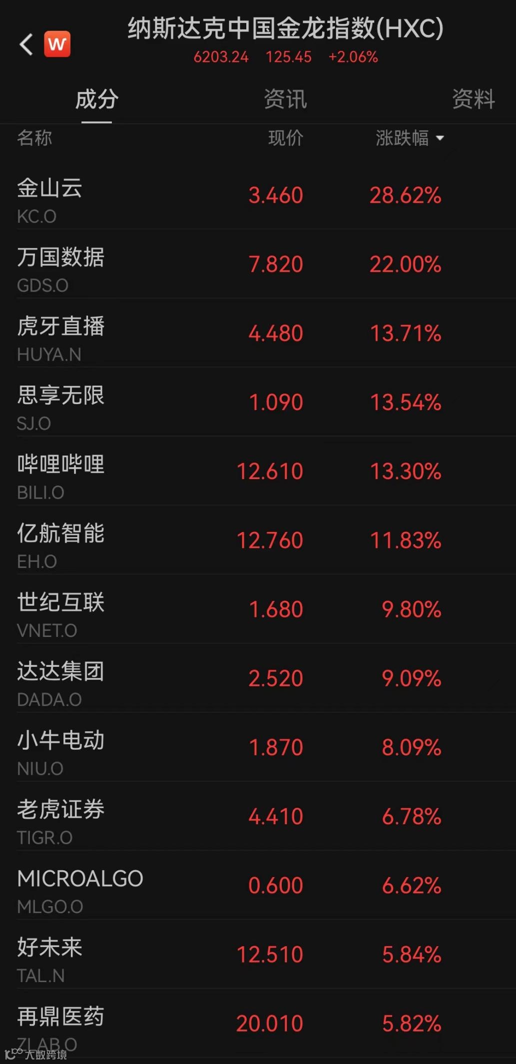 中概股全线上涨
