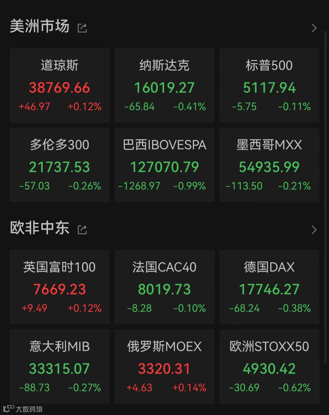 道琼斯工业指数上涨0.12%,纳斯达克指数、标普500指数分别下跌0.41%、0.11%。