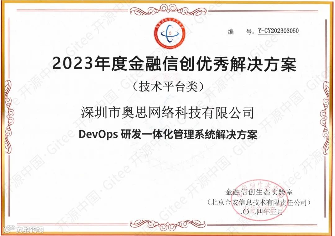 开源中国产品入选2023金融信创优秀解决方案