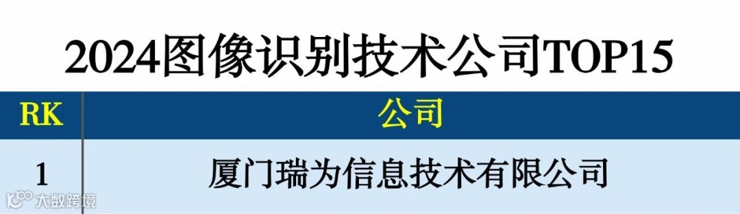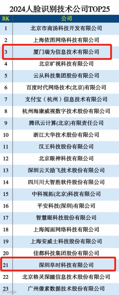 瑞为技术荣登“2024图像识别技术公司TOP15”榜单,位列第一;登榜“2024人脸识别技术公司TOP25”榜单。