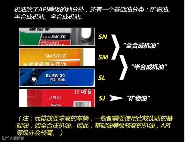 矿物油:就是普通的润滑油,等级一般在SJ以下