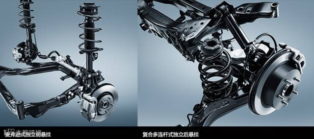 麦弗逊式和复合多连杆式独立悬挂组合。