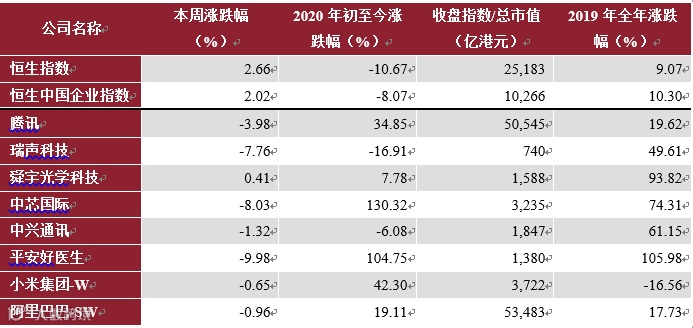 注:阿里巴巴-SW于2019年11月首发上市,2019全年涨跌幅以上市首日发行价为基准