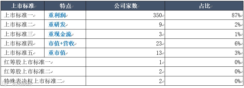 上市标准一始终是企业科创板上市的绝对主要选择。意外的是,在较长时间内基本无企业依据市标准二和三实现上市。而无营收利润要求的上市标准五占比反而不低。