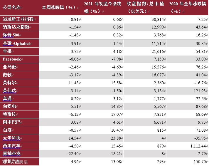 同时,我们分别追踪跨市场指数和个股行情动态,对于上市公司,暂时选择了最具代表性的16只美股及8只港股。