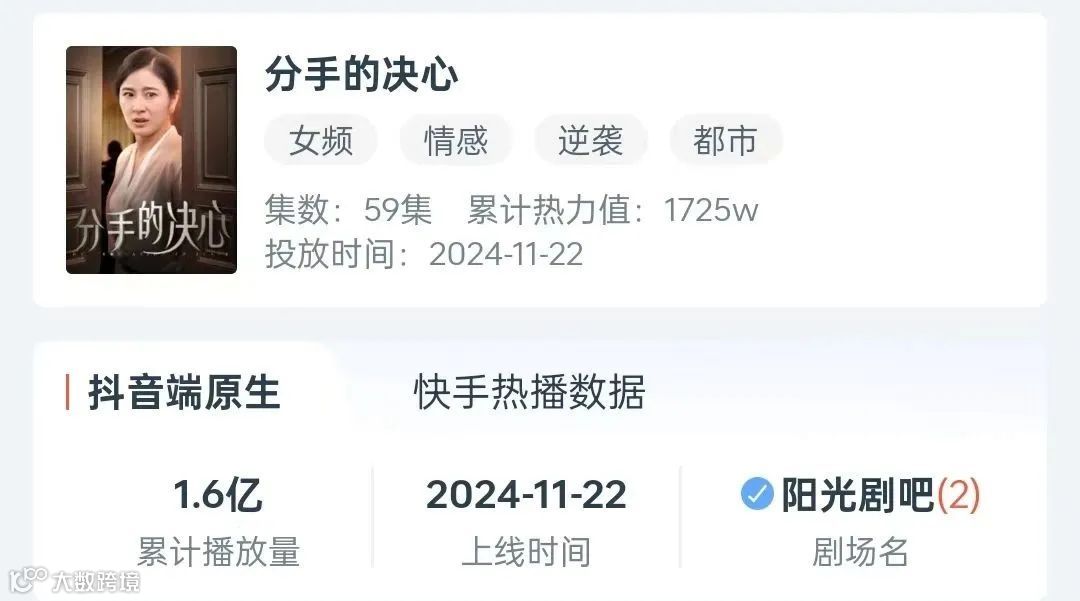 最近榜上的《分手的决心》就是一部聚焦中年女性及家庭主妇的困境,用爽剧内核来引起观众思考的大女主短剧!