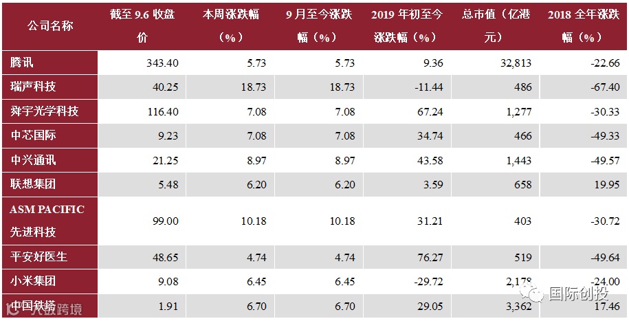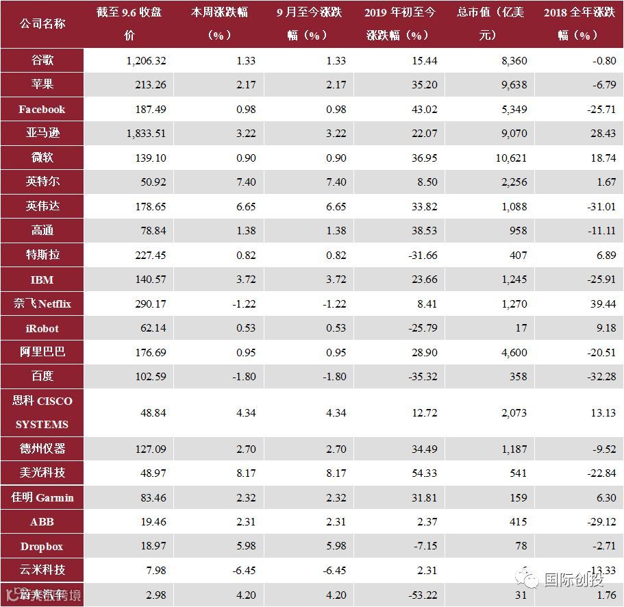 对于跨市场相关上市公司,我们分别从美股和港股市场,暂时选择了最具代表性的22只美股及10只港股,追踪其二级市场行情动态。