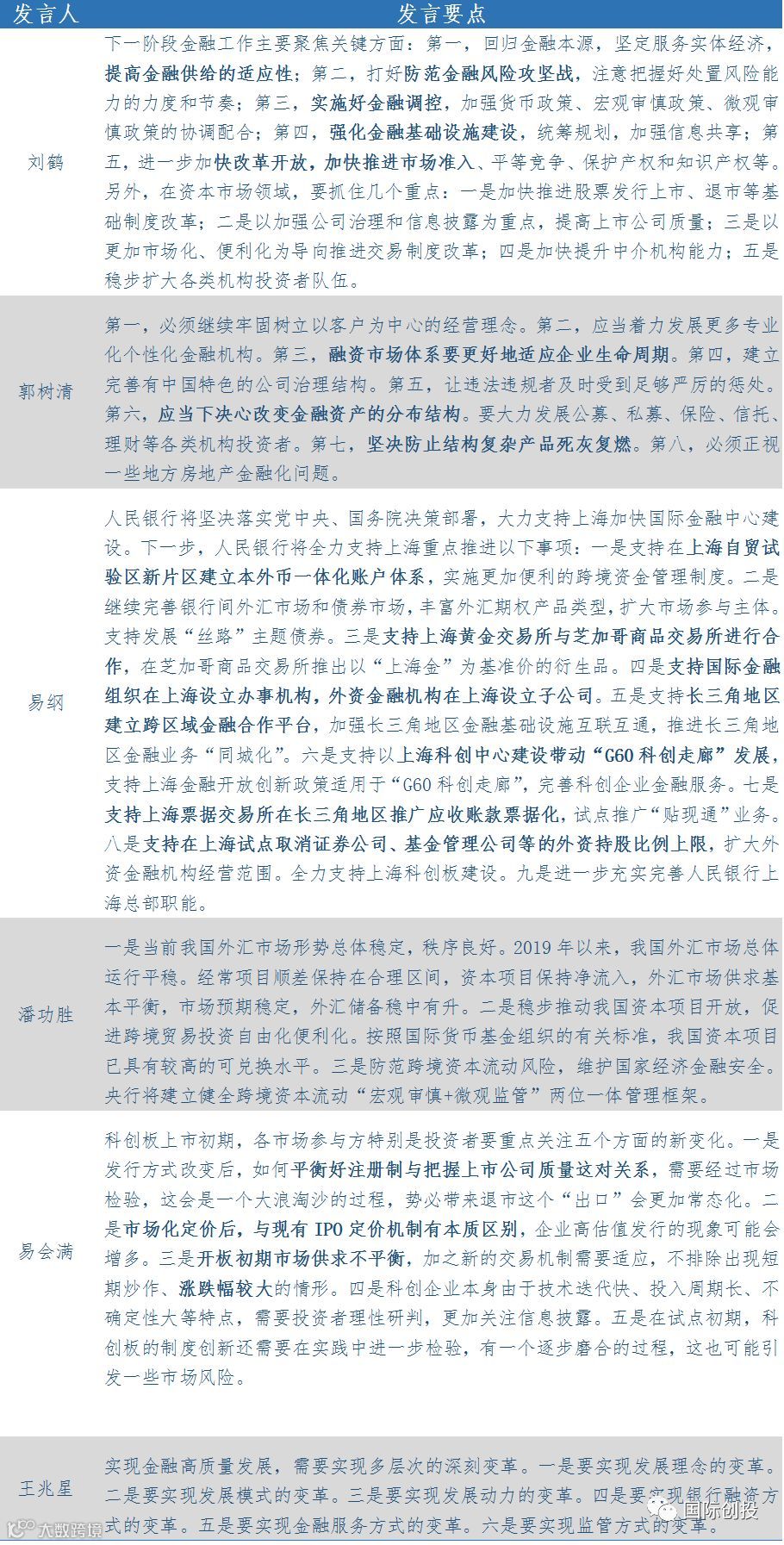 6月13日,中共中央政治局委员、国务院副总理刘鹤、银保监会主席郭树清、央行行长易纲、国家外汇管理局局长、央行副行长潘功胜、证监会主席易会满、银保监会副主席王兆星等领导出席陆家嘴论坛并发表讲话,具体如下: