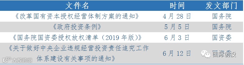 观点:本季国资监管相关政策中,有两个重要发文值得关注。一是4月28日国务院颁布的《改革国有资本授权经营体制方案的通知》,该政策的颁布有望进一步加速国企改革步伐。方案关键词是授权放权、清单管理、一企一策,重中之重在于“放权”二字。“授权放权”和“清单管理”将增强国有资本在投资、经营方面的自主性和灵活性,“一企一策”将强化市场的导向作用,国有资本有望进入市场化运作的新阶段。二是5月5日国务院颁布的《政府投资条例》。从条例给出的定义来看,政府投资是指在中国境内使用预算安排的资金进行固定资产投资建设活动,包括新建、扩建、改建、技术改造等。该条例从投资决策、年度计划、项目实施、监督管理四个角度对政府投资行为进行了严格规范,约有3.9万亿狭义政府投资受条例影响,占固定资产投资比重5-6%。该政策将对地方城投带来较大影响,一方面,地方城投面临的融资压力下降,政府投资项目的资金由财政解决,这与当前严控新增隐性债务的做法相一致;另一方面,由于地方财力有限,地方城投未来与政府相关的项目可能缩减,新增项目可能以营利性目的为主,城投的转型压力上升。