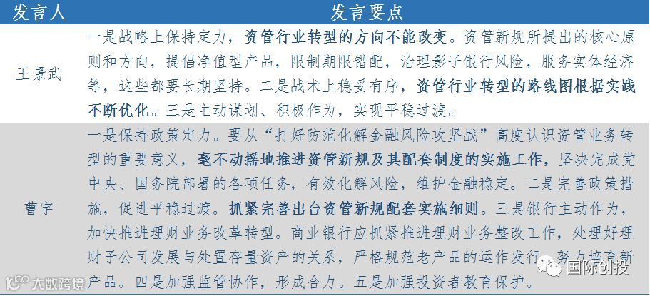 5月15日,中国财富管理50人论坛(CWM50)在京召开“资管新规一周年:回顾与展望”专题研讨会,中国人民银行金融稳定局局长王景武、中国银保监会党委委员、副主席曹宇出席会议并发表讲话,具体如下: