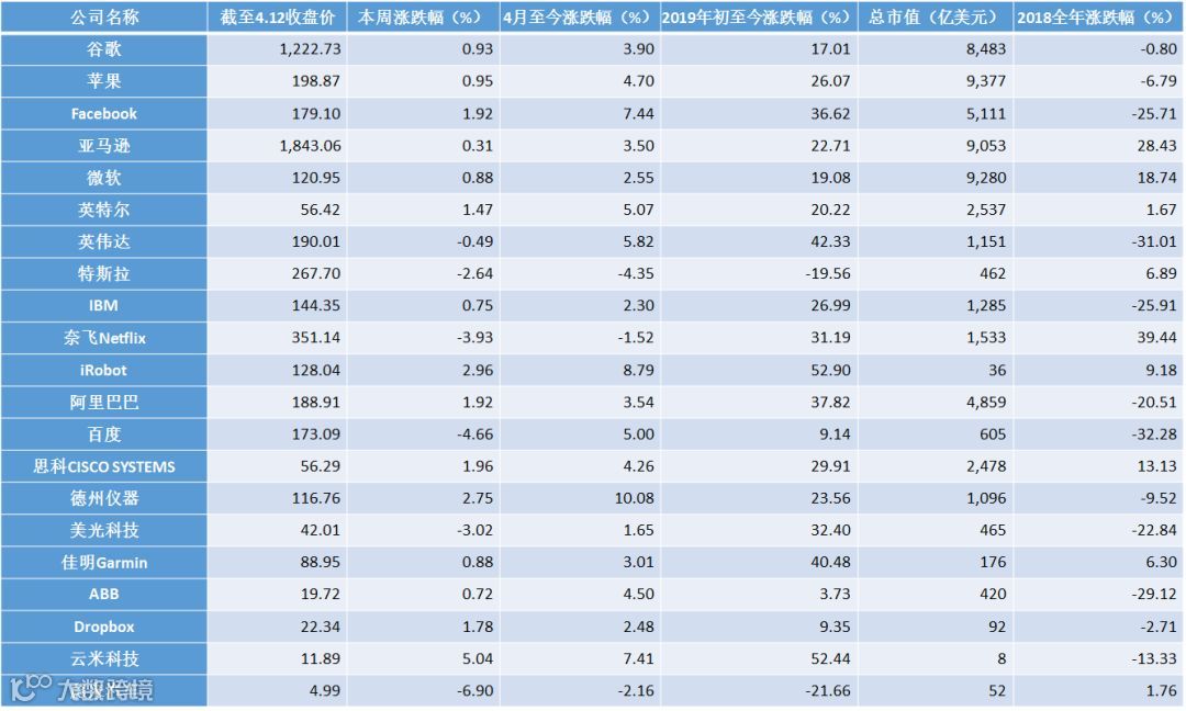 美股具体表现列示如下: