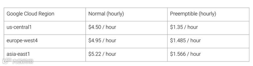 因此使用 TPU 架构的好处就是:降低成本。以下是截至 2018 年 8 月(写这篇文章的时候)Cloud TPU v2 的使用价格。