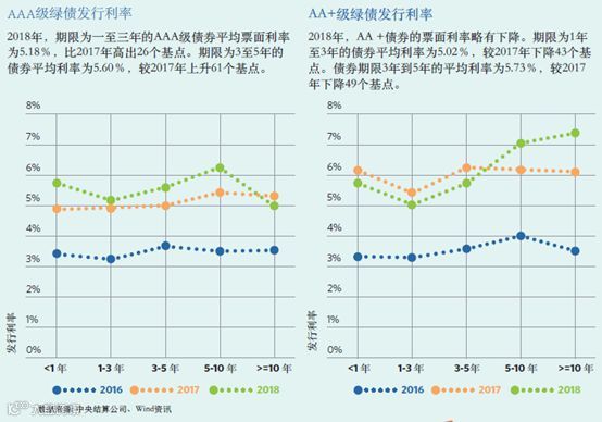 根据中央结算公司的分析,2018年国内市场的绿色债券票面利率略有上升,固定利率占大多数,但也存在递增利率债券交易,浮动利率主要用于离岸发行