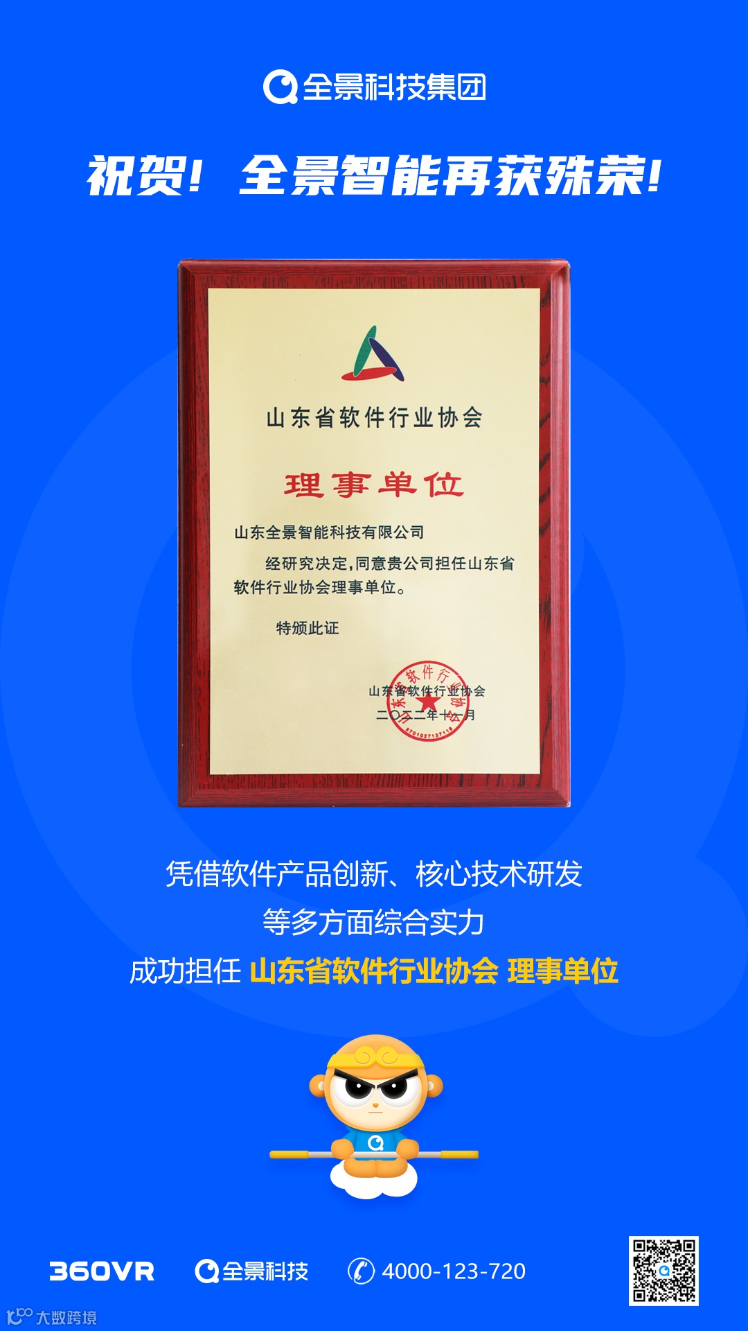 喜讯!祝贺全景科技集团旗下全景智能成功担任山东省软件行业协会理事单位