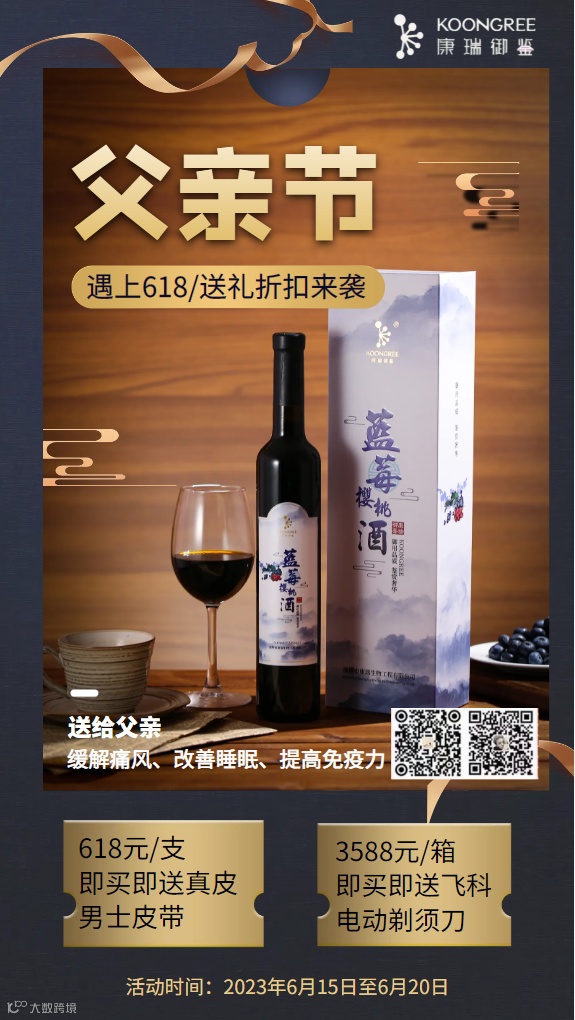 蓝莓樱桃酒中含有丰富的花青素、花色素等,可以促进血液循环,舒筋活血,具有缓解风湿和颈椎病的功效。