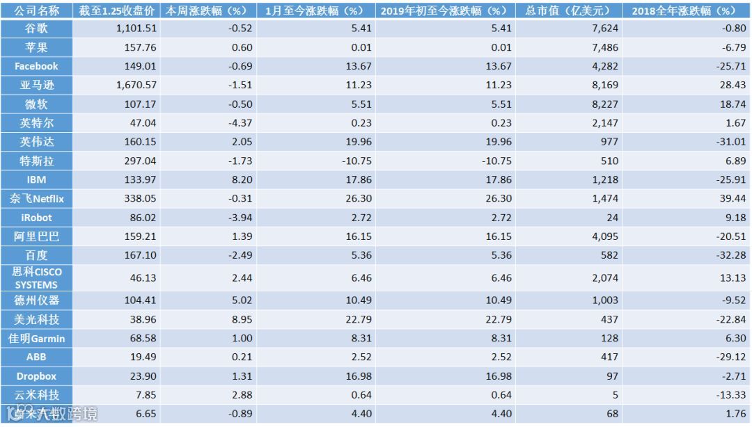 美股方面,IBM因财报好于预期,2018年年度调整后每股收益为13.81美元,高于预期的13.78美元,本周收涨8.2%。