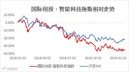 2018年初以来,国际创投·智能科技指数与沪深300指数的走势对比如下所示: