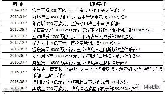 我们再来看一组中国资本家投资海外足球俱乐部的数据: