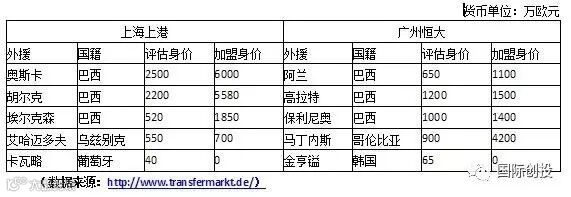 我们来看一组数据,2017.03.30,广州恒大和上海上港比赛前夕,两队外援身价对比: