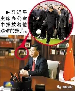 2013年12月31日,国家主席习近平发表新年贺词,其办公室也首度曝光。透过央视镜头,观众可以清晰看到习近平主席办公室的陈设,而这其中就包括一张他在出访爱尔兰时踢足球的照片,习主席对足球的热爱可见一斑。这张照片是习主席2012年2月19日出访爱尔兰时拍摄的,当时他在都柏林的克罗克公园体育场大脚将球开出的镜头被摄影师抓拍下来。这张照片也成为中国球迷津津乐道的话题,很多球迷半开玩笑地称:“中国足球有希望了!”
