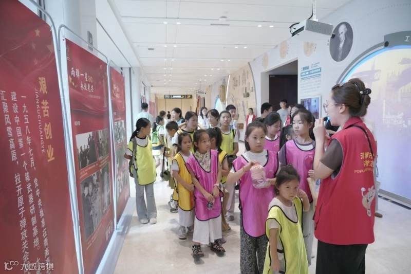 市科技馆暑假期间引入“‘两弹一星’精神永放光芒 —— 中国原子城历史图片展”,展览自7月16日开展以来,累计接待观众7万余人次,34个研学团队、2000 余名青少年接受科学精神洗礼。主题展览以时间为脉络,图文并茂的展现了新中国科技工作者在风雪高原的中国第一个核武器研制基地(原子城)开展第一颗原子弹、氢弹研制工作的过程。参观过程中,青少年在家长和讲解员带领下,深入理解“热爱祖国、无私奉献、自力更生、艰苦奋斗、大力协同、勇于登攀”的“两弹一星”精神内涵。