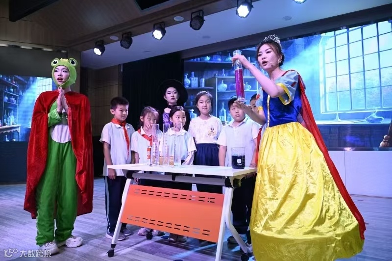 让青少年从“旁观者”变身“传播者”,让科学知识“活”起来。暑假期间,市科技馆联合淄博市文化馆、淄博市青少年科技教育协会、山东理工大学“Zn”火相传社会实践团开展“红领巾童话科普小剧场”活动,招募17名8-12岁小演员参与《水滴石穿》剧本演出全过程,成功上演2场童趣十足的科普剧。联合山东理工大学生志愿者演出《灰姑娘逆袭记》等科普剧 6 场次,通过剧情演绎与科学实验结合,吸引 1600 余人次参与。