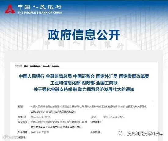 中国人民银行 金融监管总局 中国证监会 国家外汇局 国家发展改革委 工业和信息化部 财政部 全国工商联关于强化金融支持举措 助力民营经济发展壮大的通知