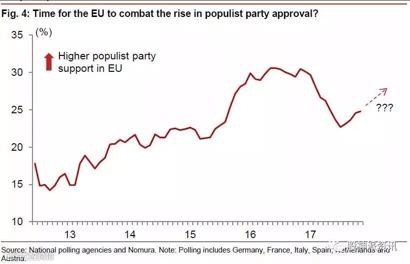 鉴于2016-2017年发生的一系列事件,欧元区在2018年有可能在政治上达成跟紧密的联盟。英国退欧、法国和意大利的民粹主义崛起等等,都给欧盟领向“联邦”靠拢提供契机。