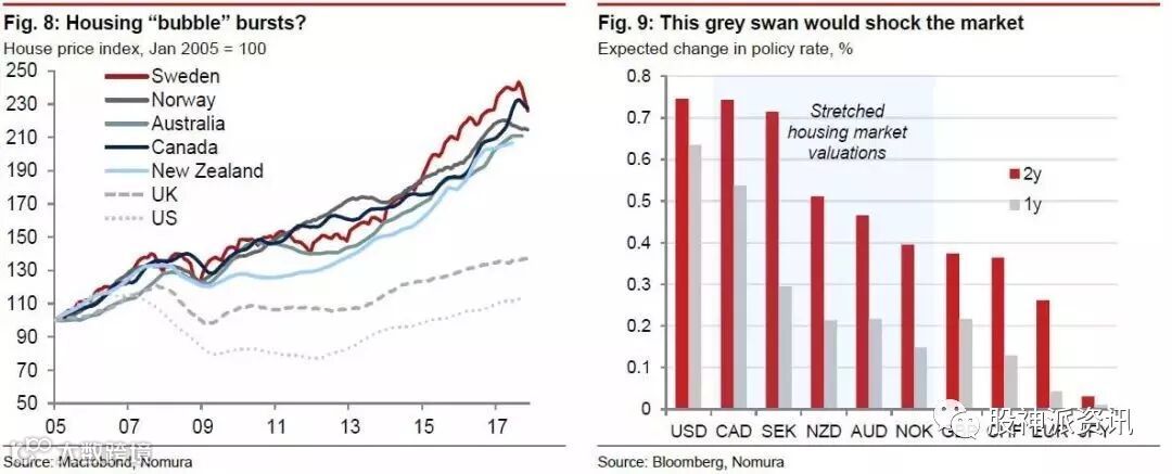新西兰央行已经表明国内需求走弱的情况可能导致降息,澳洲储备银行,挪威央行和瑞典央行都指出,住房市场是一个关键的风险观。野村证券认为,楼市降温将推动这些央行采取更加鸽派的政策方向;在极端情况下,市场将更偏向于对降息定价而不是对加息定价,债券收益率下降、主要货币将贬值。
