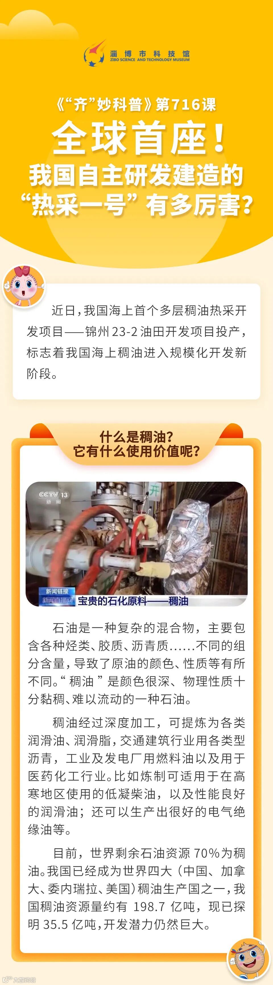 【可以听的科学课】《“齐”妙科普》第716课  全球首座!我国自主研发建造的“热采一号”有多厉害? 淄博市科技馆