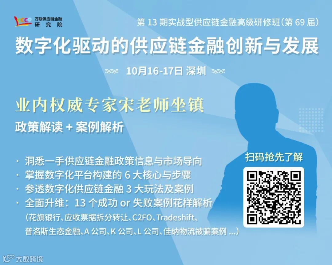 供应链金融作为一种新兴的金融服务模式,从中央到地方政府,无一不在探索,时代造就了供应链金融,而供应链金融亦不辜负时代的机遇一路乘风破浪,为中小企业降本增效,推动市场良性发展。我们有理由相信,供应链金融更广阔的未来,指日可待。