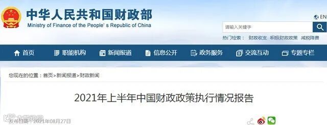 财政部公布了“2021年上半年中国财政政策执行情况报告”。