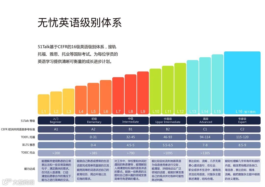 作为51Talk旗下的成人英语培训品牌,无忧英语成立于2011年7月8日,曾先后获得多家国内外知名机构的投资,2016年6月10日在美国纽交所上市,是中国第一家赴美上市的在线英语教育公司。