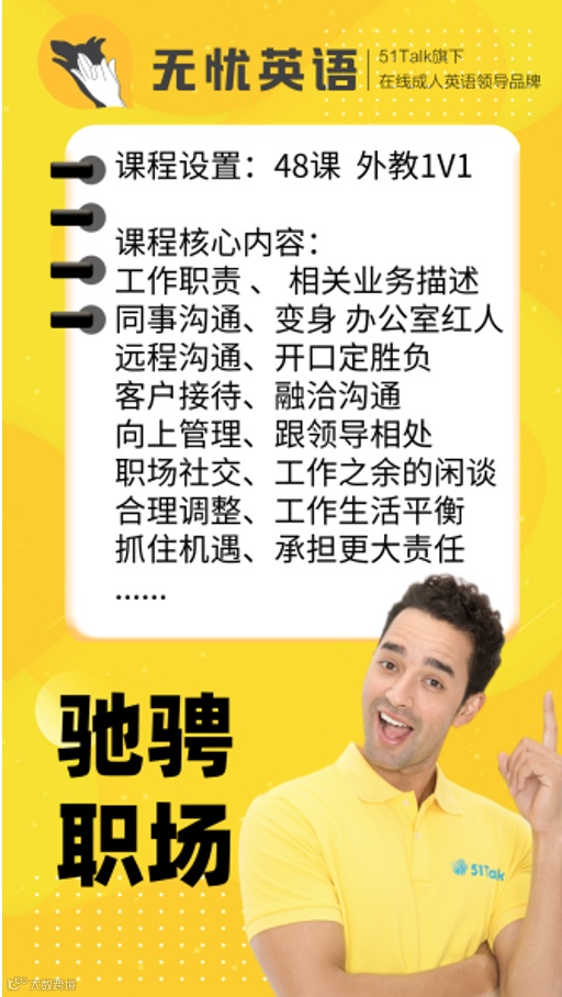 51Talk无忧英语企业培训,专业致力于为各大中小型企业提供英语培训定制方案。