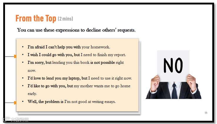 3、学员能掌握60多个可借鉴、可发挥的万能绝佳语句和衔接词汇