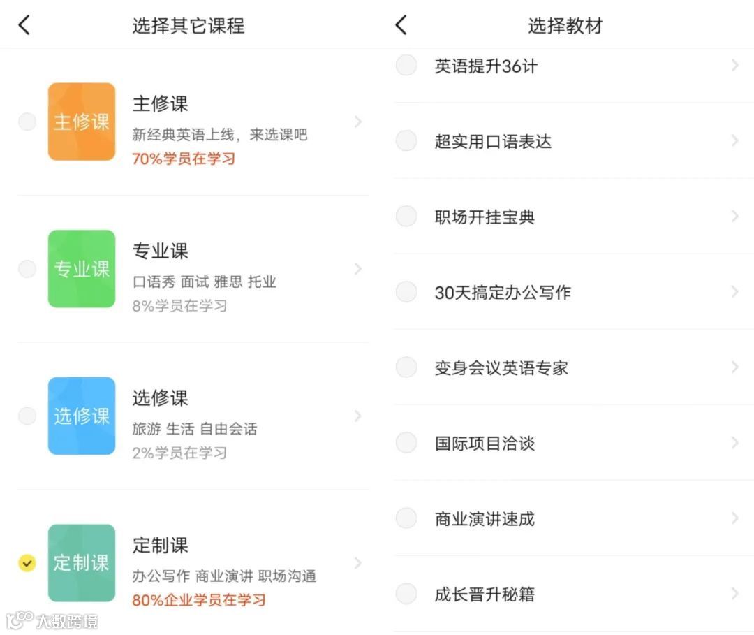 定制专区的课程绝大部分都在30-50节课以内,目标清晰明确,让学员通过短时的集中学习,达成多某个领域,某个英语提升技能的掌握。