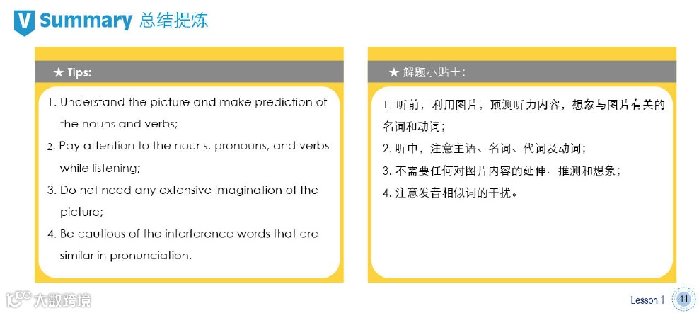 # 听力课程五个部分呈现: