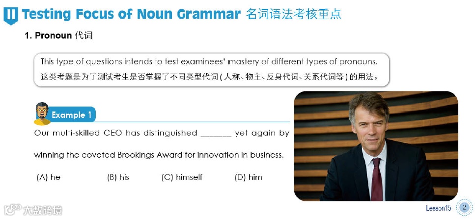 1. 从托托业考试的技能入手,提供详尽的听力和阅读考试指导,针对中高级级水平的学员通过独特的“进阶训练”方式;