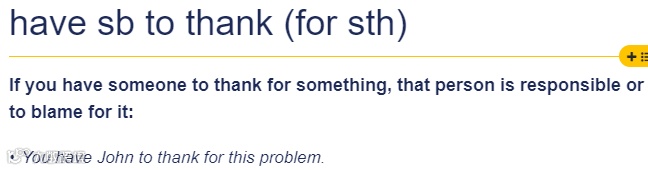 这里,“thank for”还有一种用法:have sb to thank (for sth),表示“多亏有了...的帮助,才让你做成某事”。